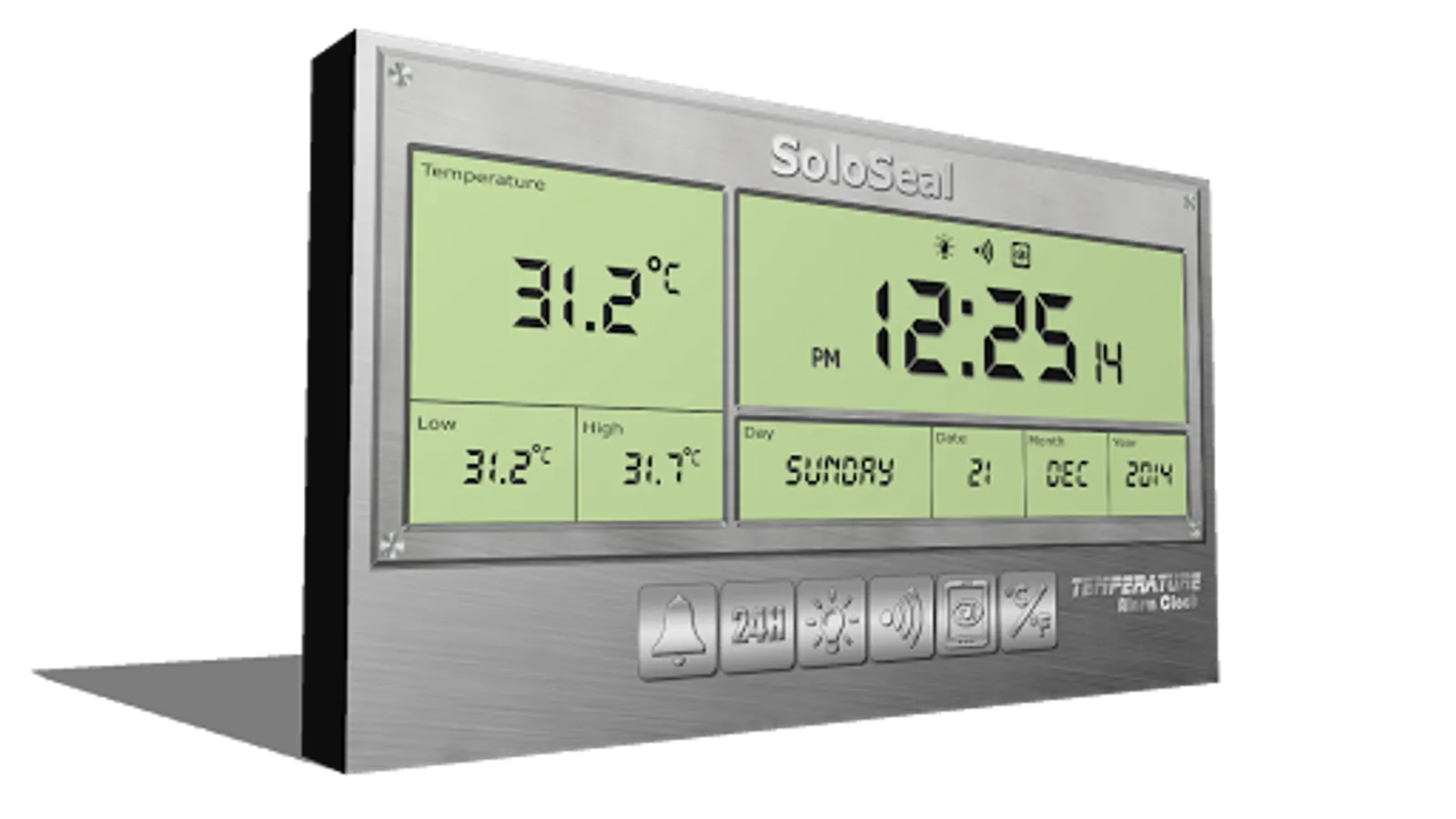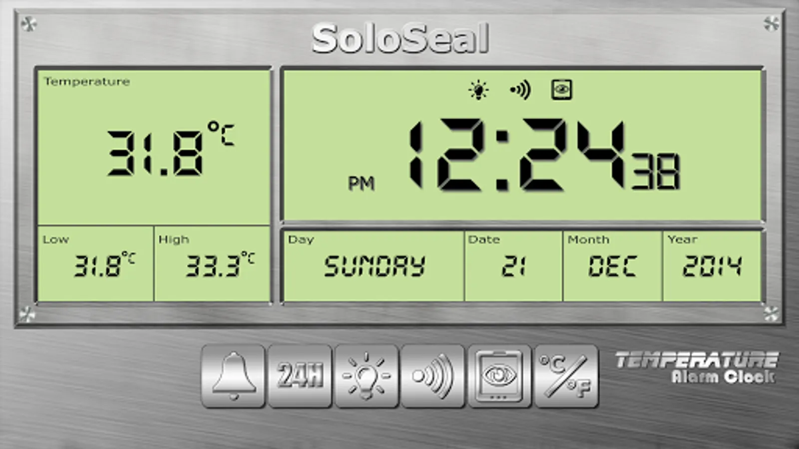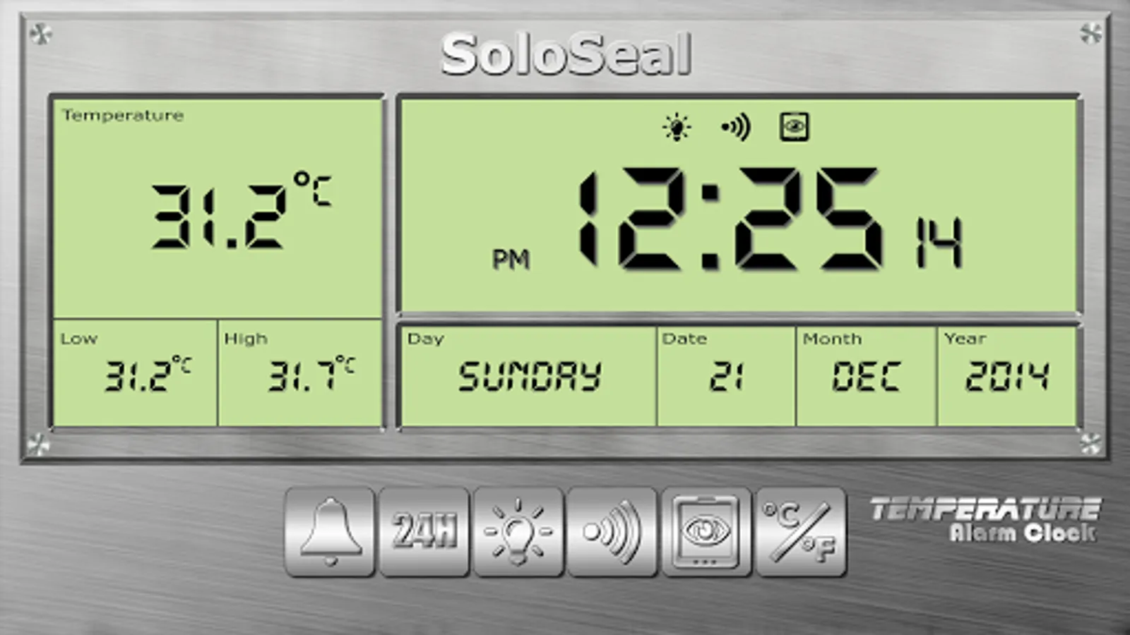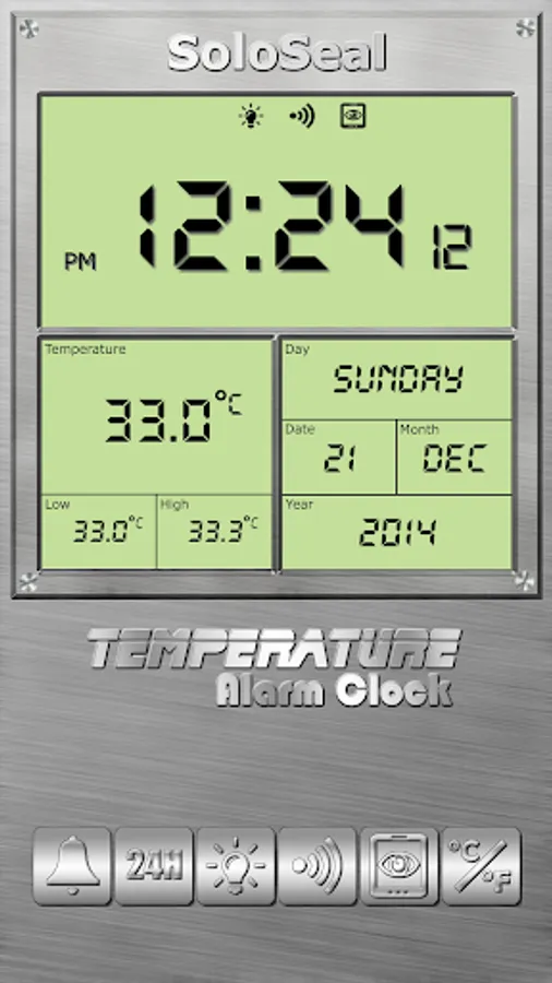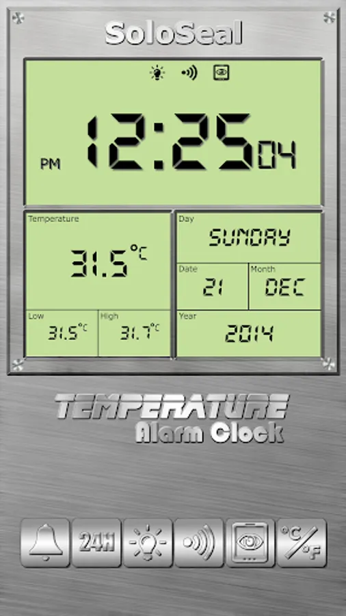 Temperature Alarm Clock uses the device's internal thermometer sensor to measure the surrounding environment's ambient temperature.