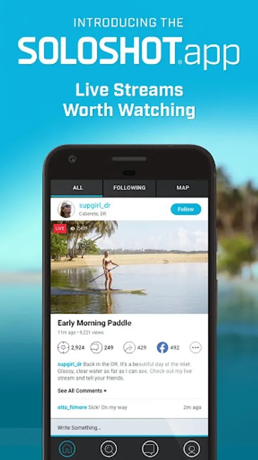 All streams are filmed by SOLOSHOT3 – a personal cameraman that automatically pans, tilts and zooms to keep the subject in the shot from up to 2,000 feet away. The SOLOSHOTapp brings you high-quality live videos captured from the best perspective. Discover engaging people doing interesting things around the world.