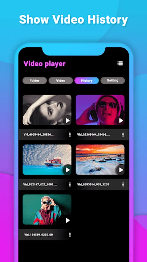 - External storage : MP3 Music Player automatically scan all video file in your device and SD card.