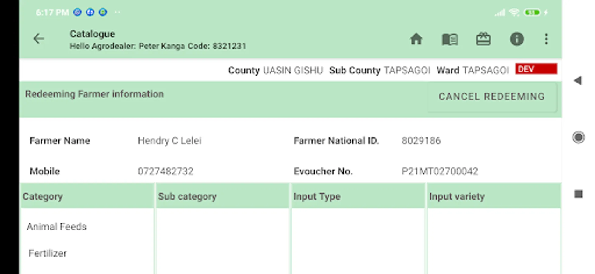 The Redeeming app is used to facilitate distribution of inputs to farmers