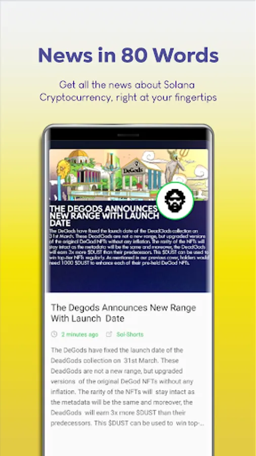 The app SolShorts is your one-stop destination for all the latest news about Solana Cryptocurrency. Equipped with world-class algorithms, the app works to bring to you, the most relevant and popular stories. Not just that, you can get all the news you need indigestible bits of 80 words or less. With crisp news from SolShorts, save time yet keep abreast with the world of Solana Cryptocurrency. Find the app on Google Play or the Apple App Store!