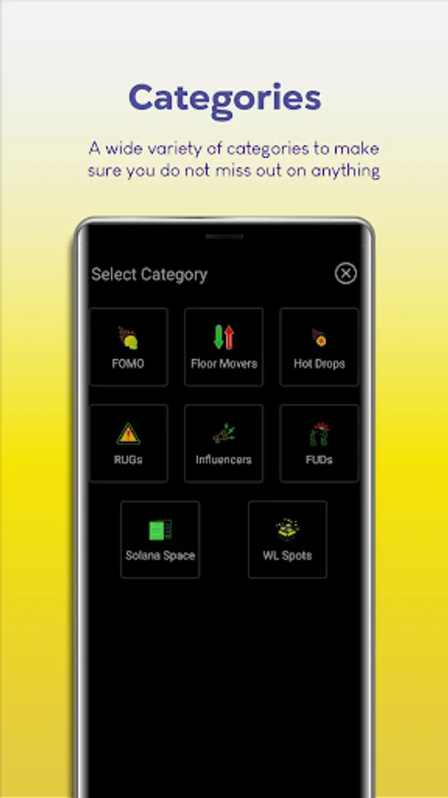 Cryptocurrency. You can consume news according to your preferences from the neatly sorted categories provided by the app. The categories include Hot Drops, Floor movers, FOMO, Rugs, Solana Space, and Whitelist Spots amongst many others.