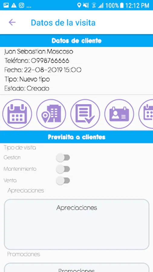 Within the application you will be able to create visits for your clients, fill out pre-visit and post-visit templates, carry information on the tasks that must be fulfilled both before and after the visits.