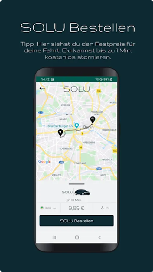 With SOLU you can now reach your destination conveniently via app, affordable and in high-quality vehicles.