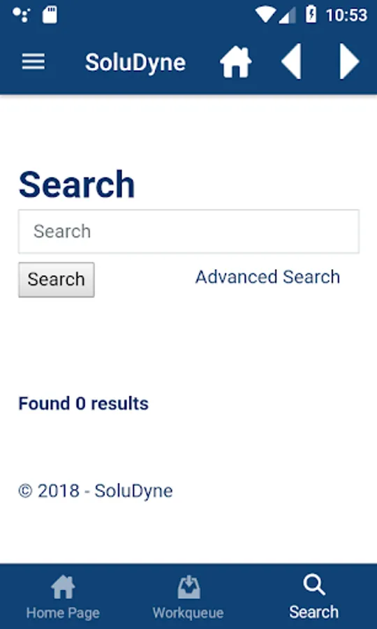 - Clicking on the Search menu item shows the Search page from the SoluDyne System.