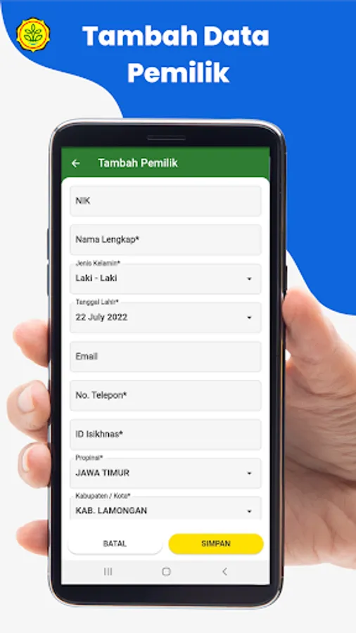 This feature provides business livestock ownership information including deed of establishment, email, telephone number, address, PIC identity (NIK, name, gender, date of birth, telephone number, address)