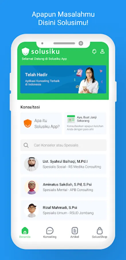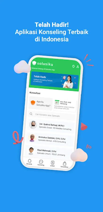 Solusiku App is a platform that focuses on online counseling services. Solusiku App guarantees the best quality of service and respects the privacy of every patient.