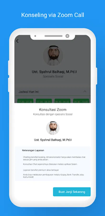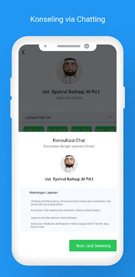 My Consultation App consists of various experts including, Psychologists / Psychiatrists, Religious Leaders / Ustadz, Psychiatrists, and various other experts in the field of problem and social management.