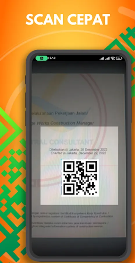 Waktu adalah uang, dan kami mengerti itu. Dengan aplikasi Scan SKK Konstruksi, Anda dapat memeriksa sertifikat Anda dalam hitungan detik. Hemat waktu berharga Anda untuk hal-hal yang lebih penting.