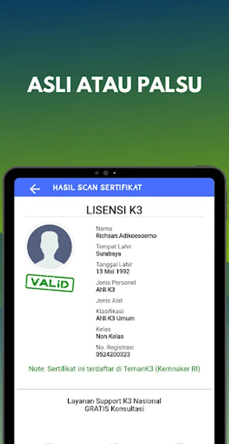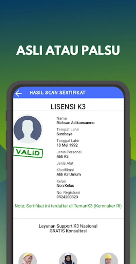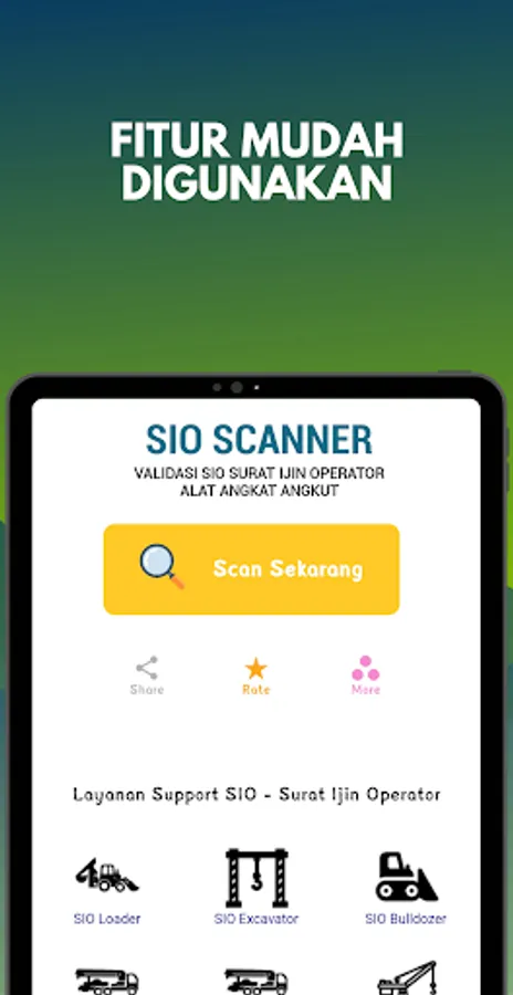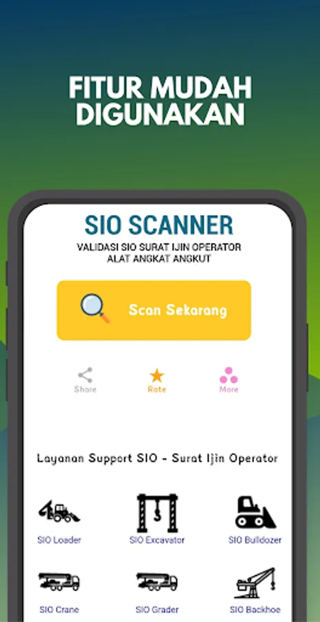 Welcome to SIO Scanner, a revolutionary application for checking the validity of the Operator's License (SIO) of Lifting and Transport Equipment such as Forklifts, Excavators, Loaders, Cranes, and more! Developed to make your work easier, SIO Scanner is the leading solution for ensuring that your K3 license is genuine and valid. We understand how important it is to ensure that heavy equipment operators such as Forklifts, Excavators, Loaders and Cranes have valid licenses in accordance with Ministry of Energy standards RI work. With SIO Scanner, you can verify quickly and easily.