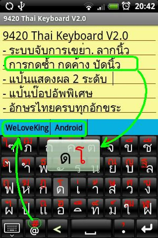 9420 Tablet Keyboard for Android is a free Thai/English keyboard software (with built-in "Full" Thai/English word database) that designs for tablet devices and optimizes for text-hungry apps like Line, Twitter, .