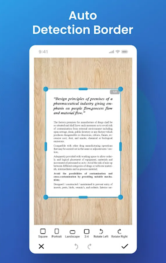 This camera scanner app is smart enough to automatically detects document and image borders while you scan document files or image files from your device camera or photo gallery. In addition to this, you have the full flexibility to manually adjust, edit, crop, rotate, add text, apply filters to your document. Document Scanner lets you quickly scan any kind of documents in your office, photo, bills, receipts, books, magazines, class notes, Business Card etc.