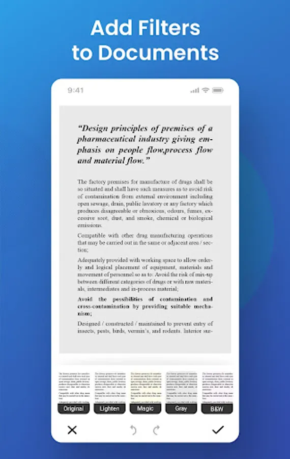 ✓ Superb quality results with multiple filter options: photo, document, clear, color or black & white