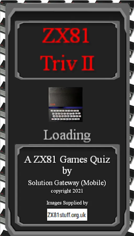 If ever there was a computer that could out-iconise the Sinclair ZX Spectrum then the Sinclair ZX81 must be a strong contender. Built using information and images from www.zx81stuff.org.uk (our thanks to the owners) and available for Android devices (version 6 onwards) with Apple iPhone and iPad version coming soon. ZX81Triv II will test your knowledge of ZX81 software with three categories (programs beginning with 0-F, G-O and P-Z respectively). Each category has three difficulty levels for you to progress through on your trip through the monochrome but charisma filled world of ZX81 software. The quiz covers lots of different types of programs including action games, text adventures, board games and even business applications which were used on both the standard 1k ZX81 and with the 'massive' 16k memory pack.