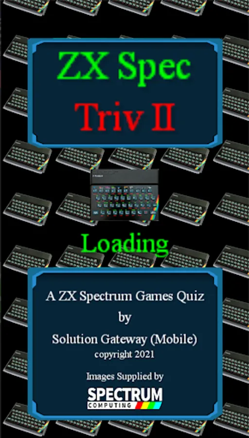 A brilliant, fun packed quiz based on games for the iconic Sinclair ZX Spectrum and a must for retro-computing fans everywhere. Built using information and images from www.spectrumcomputing.co.uk. Available for Android devices (version 6 onwards) with Apple iPhone and iPad version coming soon. ZX SpecTriv II will test your knowledge of ZX Spectrum gaming with two 'Action Game' set categories and a third set dedicated to 'Adventure and Board Games'. Each category has three difficulty levels for you to progress through on your trip through the golden era of the ZX Spectrum when 48k memory was more than enough and 256x192 was high resolution.