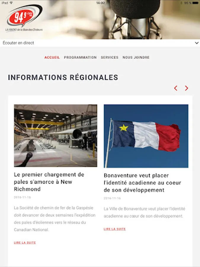 The mobile application of CIEU-FM is the fastest way to stay connected to what is happening in the Bay of Chaleur. CIEU-FM discusses the social community news, sport and culture of the community. Our information service covers the daily news of the region and allows you to keep abreast of the latest developments in our community. Musically, our program serves adult contemporary sound with a touch of rock.
