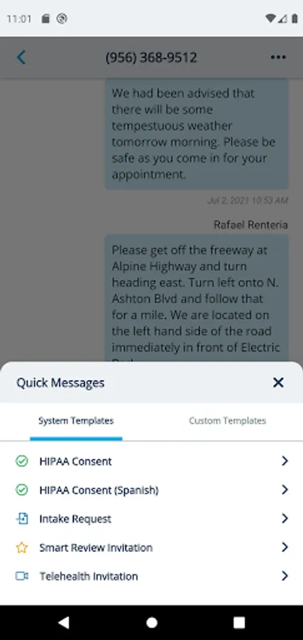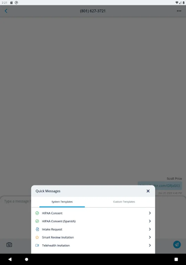 Leverage message templates for faster communication for easily sending Intake or Payment requests on your phone.