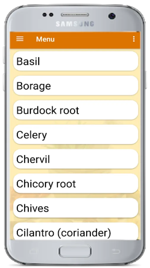 1) Basil,Borage,Burdock root,Celery,Chervil,Chicory root,Chives,Cilantro (coriander),Dandelion,Dill weed,Epazote,Garlic,Ginger,Ginseng,Lemongrass,Maca root,Oregano,Parsley,Peppermint,Rosemary herb,Sage,Spearmint,Stevia,Summer savory,Sweet marjoram,Tarragon,Thyme herb,Turmeric