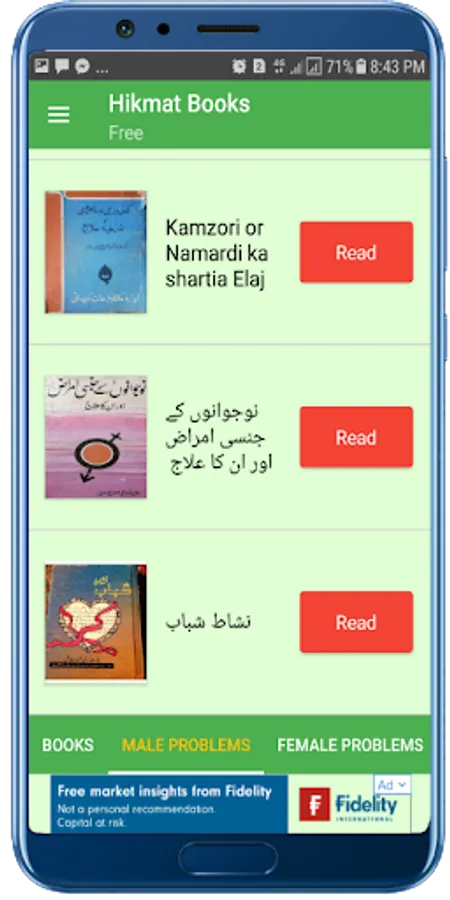 Hakeemi Nuskhe Book in Urdu main available he . iss k alawa bohat se dosri Hakeemi Books bhi dastyab hain. jo log apna Hakeemi Ilaj kerwana chahtay hain ya khud seekhna chatay hain to wo iss mobile app se istfaada hasil ker saktay hain. bohat se amraz ka ilaj hikmat main mojood he. msaal k tor per jildi amraz ka ilaj bhi hikmat main mojood he, nafsiyati amraz ka ilaj nhi hikmat main mojood he, zehni amraz ka ilaj bhi ho sakta he, dimaghi amraz ka ilaj bhi mojood he , zanana amraz ka ilaj to aam tor per hikmat se he sahi tareeqay se ho sakta he,zehni amraz ka ilaj in urdu main seekhnay k liye ya mardana amraz ka ilaj in urdu main seekhnay k liye, ya jinsi amraz ka ilaj in urdu main seekhnay k liye ya kernay k liye ye mobile app bohat zyada mufeed sabit ho sakti he, mardana amraz ka ilaj k liye ap ko bohat se nayaab kitabain iss mobile app main parhnay ko mil jain ge.
