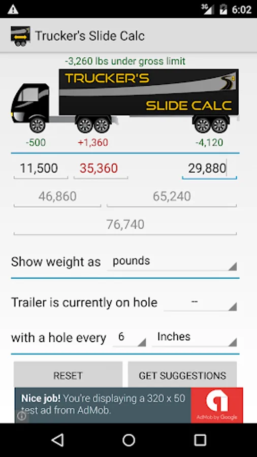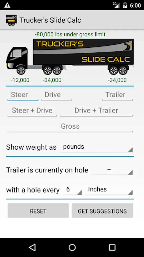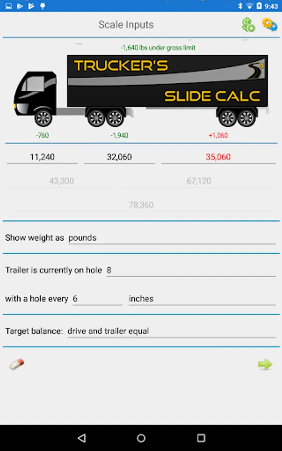 Enter your axle weights (platform scale or individual axles) and the app calculates how much each axle is over or under, including gross. Then click to get a suggestions and it tells you where to slide. It's that easy.