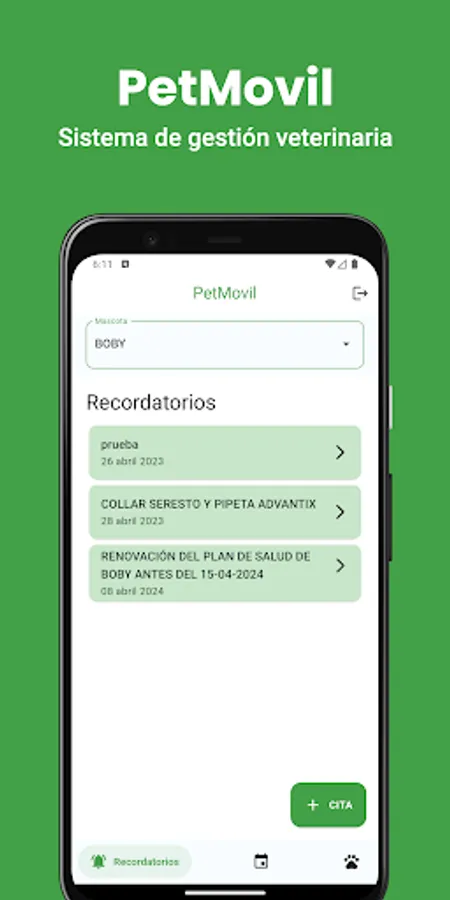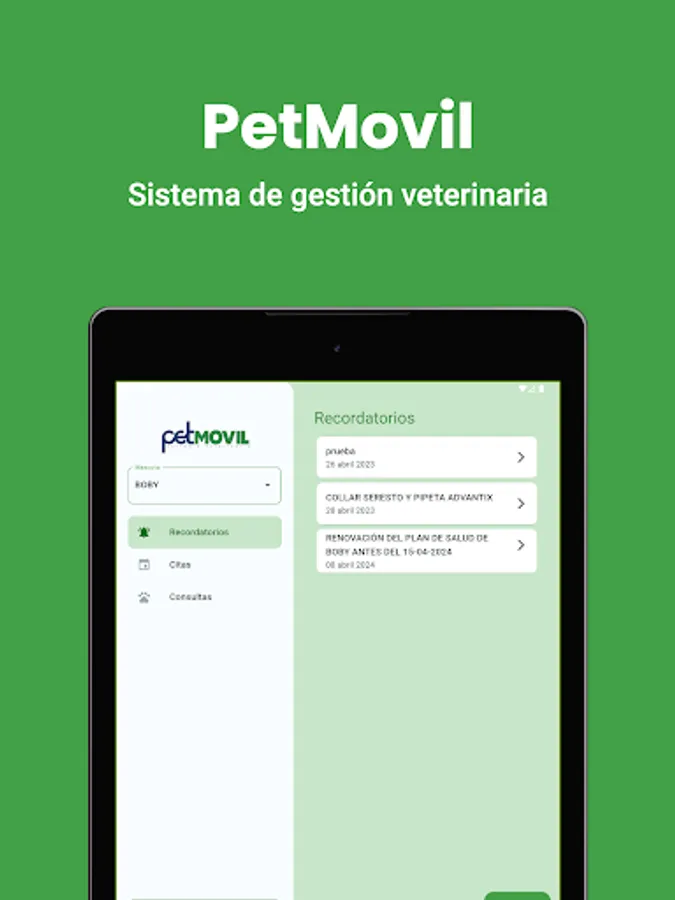 Application for access to your pet's medical history. You can see old consultations, appointments, reminders and any details that your veterinarian considers important. Always stay informed and receive notices on your mobile.