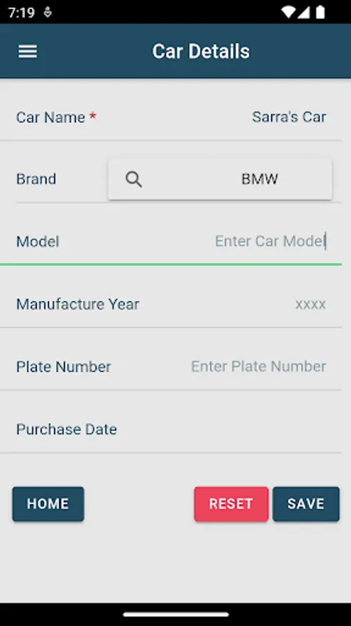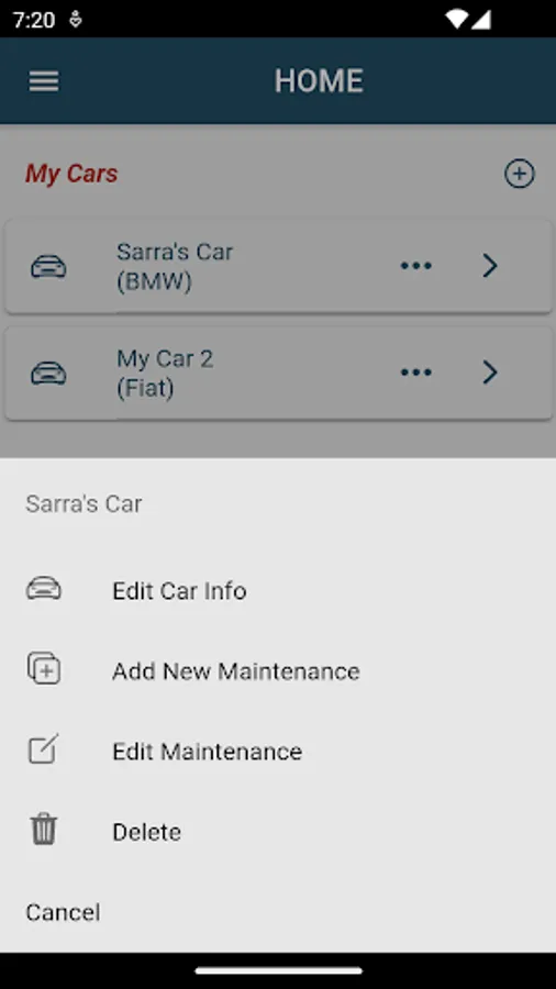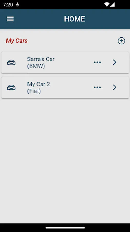 “Add Car” - Add one or more vehicles to your app and specifying each vehicle’s data