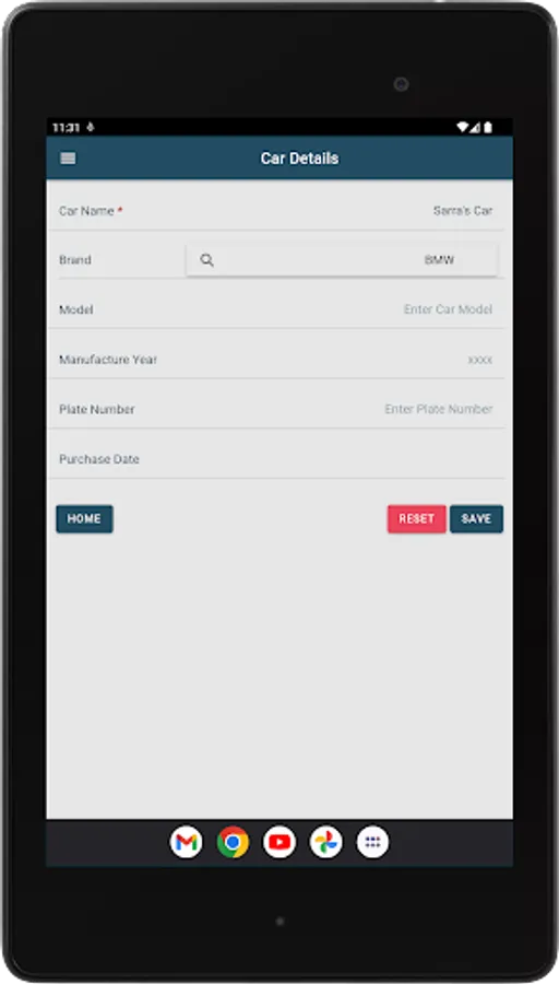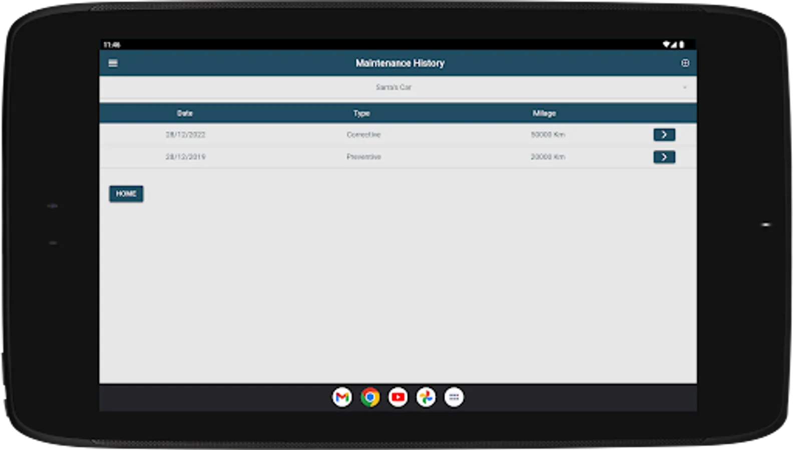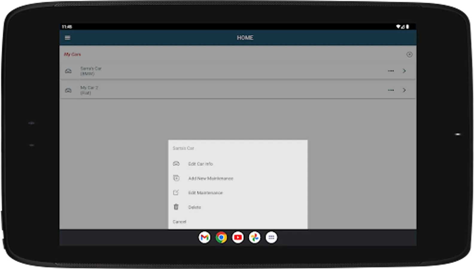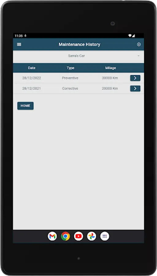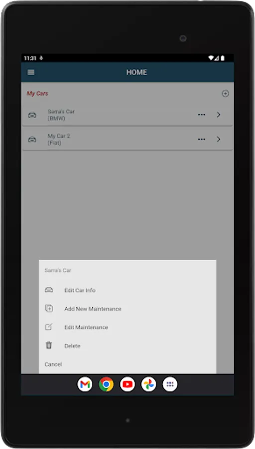 “Home” – View, edit, or delete vehicles you recorded in your app