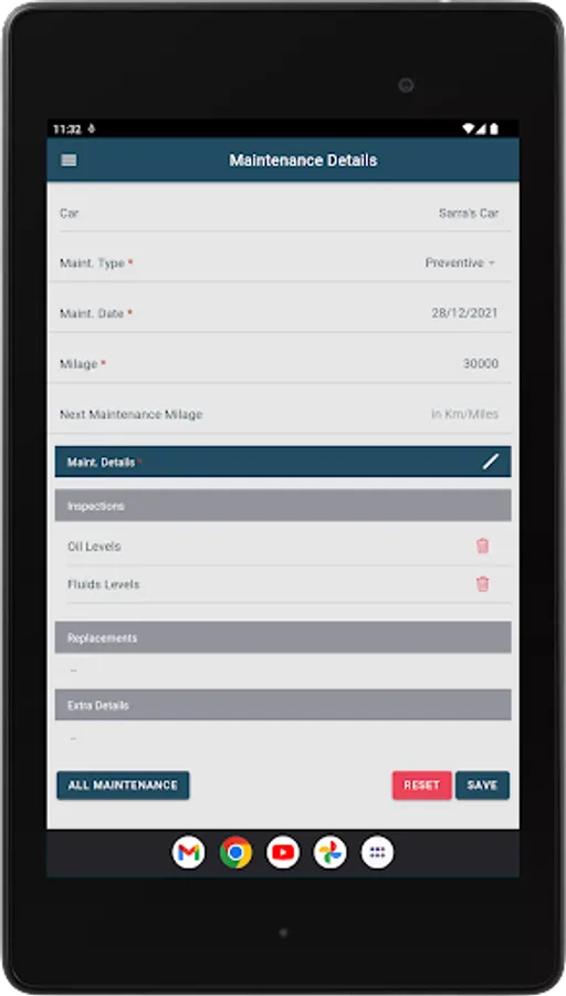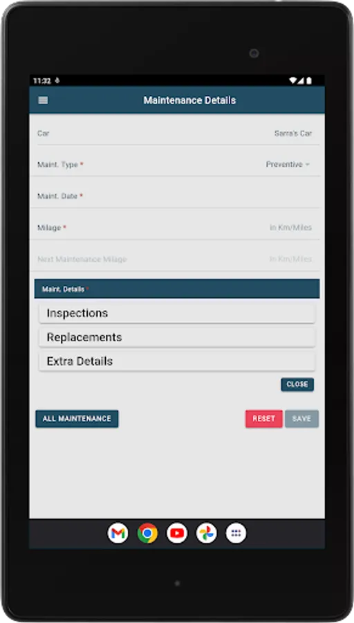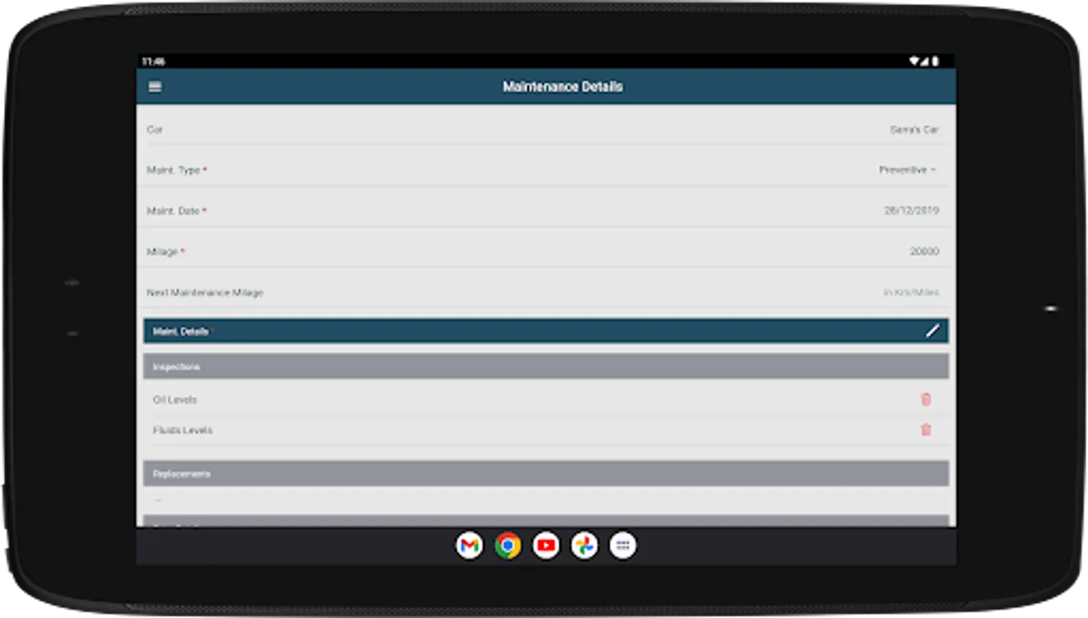 “Add New Maintenance” – Add a new maintenance log for a specific vehicle.