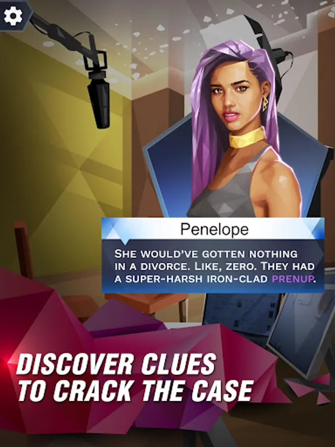 Find clues by talking to suspects and investigating whether their alibis hold up. Did anyone actually witness the murder? Every character has secrets - can you determine which are relevant to solving the case? Confront suspects with evidence to find their motives and make them come clean!