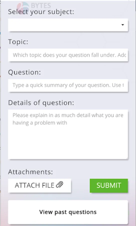 Bytes Solve By Chat enables you to quickly get help with concepts and questions that you are struggling with.