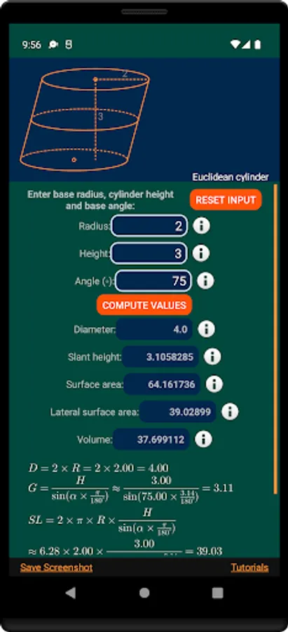 Geometry Calculator PRO is a very useful tool for math students, engineers and other people who need a fast way to compute numerical values that involve geometric figures.