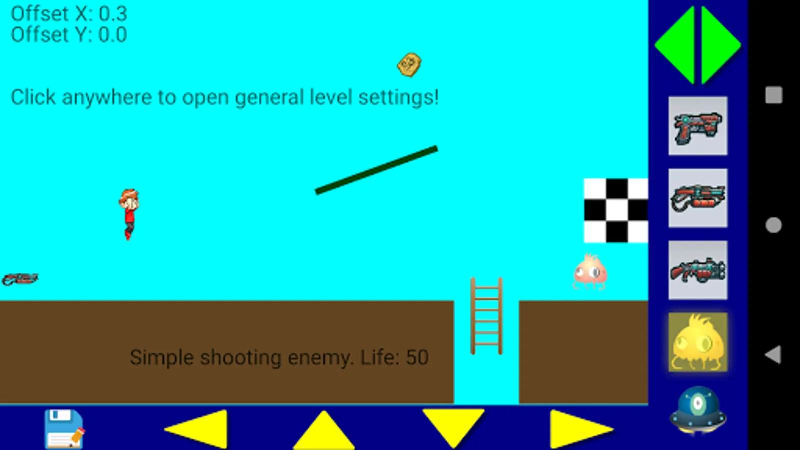 Based on the popular box2d physics engine, Game Level Maker 2 enables you to create 2d levels with realistic solid body interactions: platforms, ladders, pickable items and, of course, enemies!