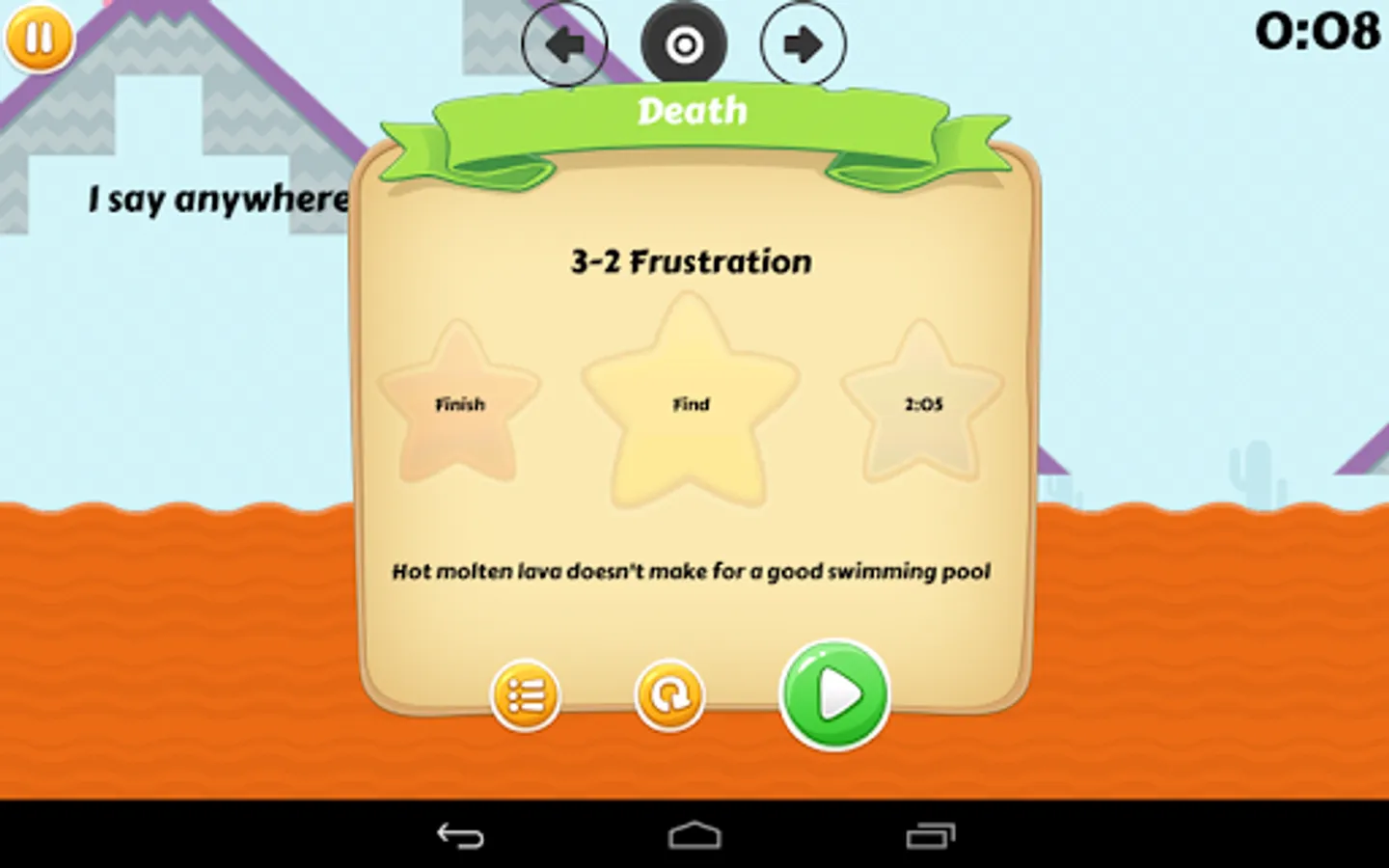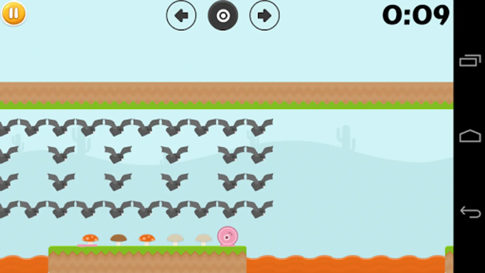 A innovative platformer with no virtual controls. Using sweeping gestures to jump and tap to stop.