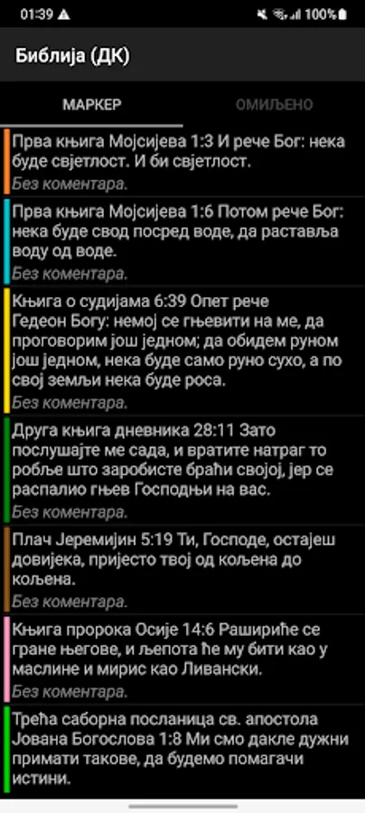 - маркирање омиљених стихова одређеном бојом и дописивање коментара