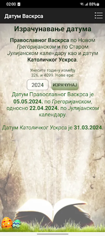 - Израчунавање датума Васкрса, као и католичког Ускрса, једноставним уносом године.