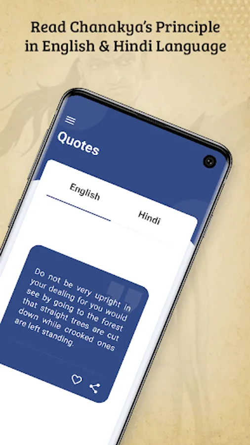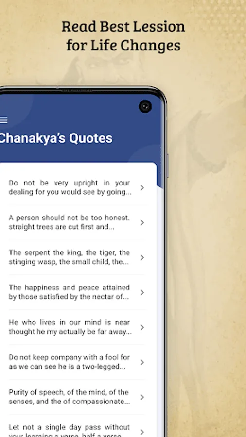 This application is meant only to show out the power of the thoughts, How a man can change his life by changing his thoughts. Here is the app with quality quotes from the great guru "Chanakya" in the form of "Chanakya Niti from A to Z". This application is a great source of inspiration for all the peoples around the world.