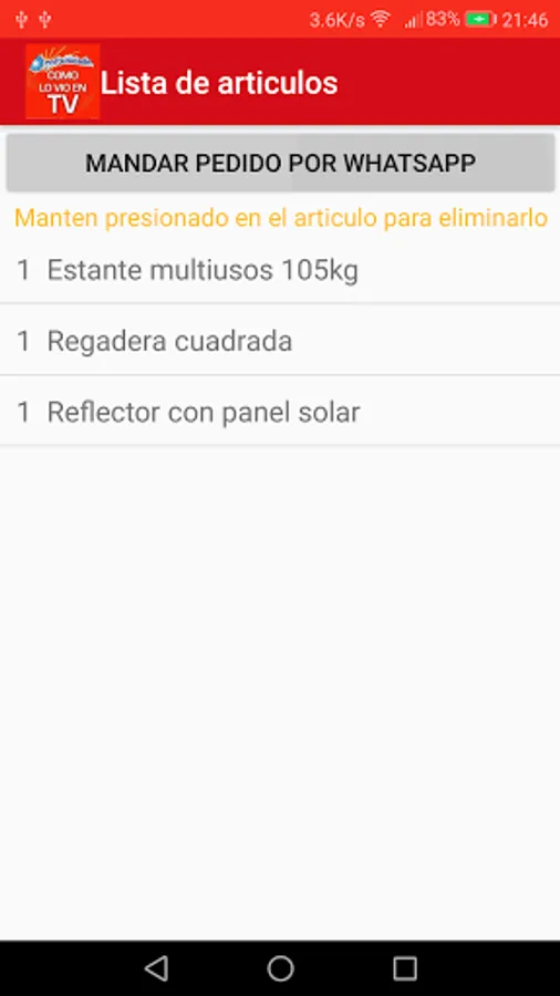 Download this application on your cell phone and decide what to buy, add products to the cart and finish your purchase through WhatsApp service.