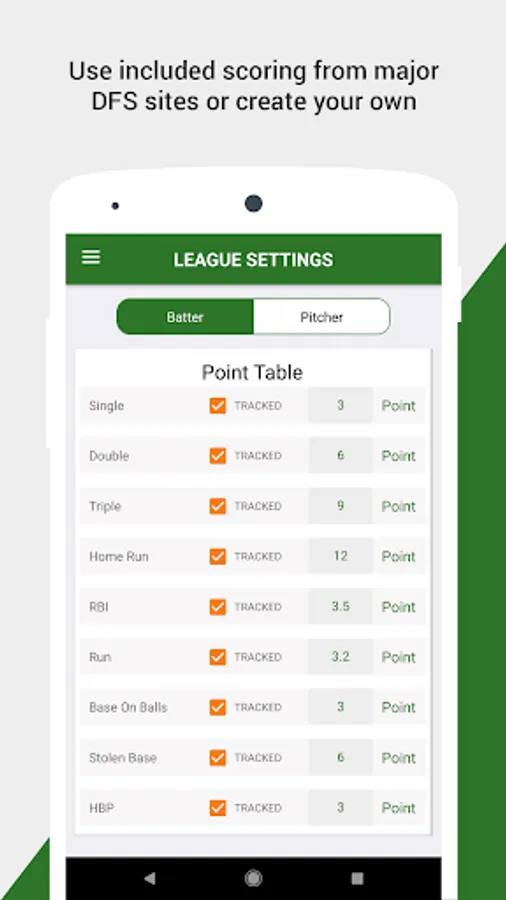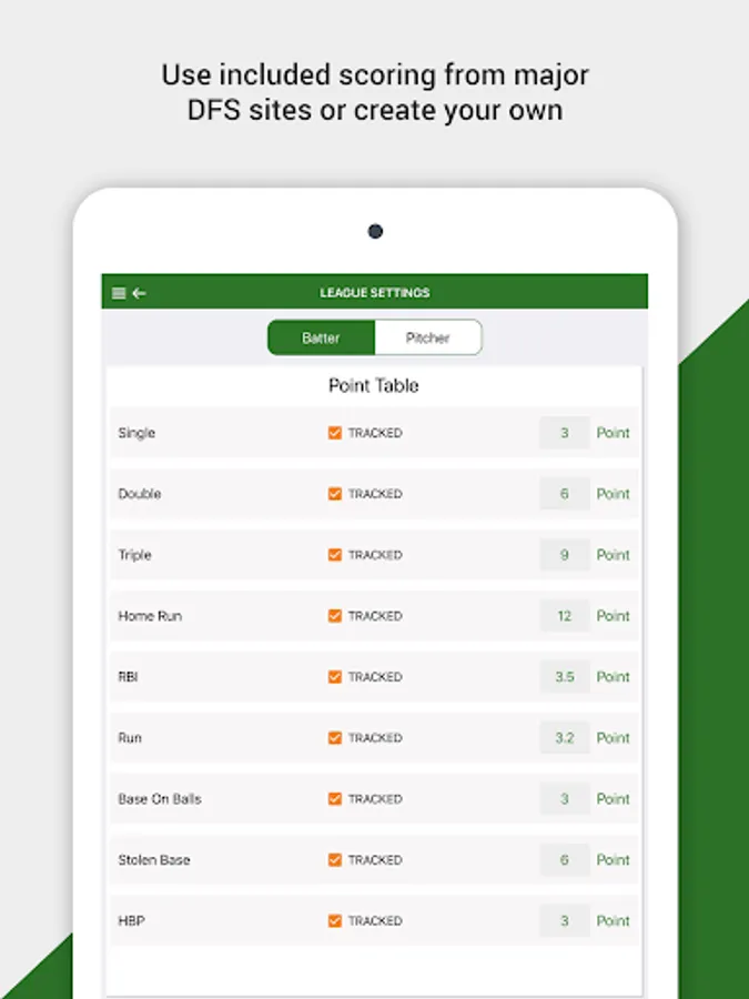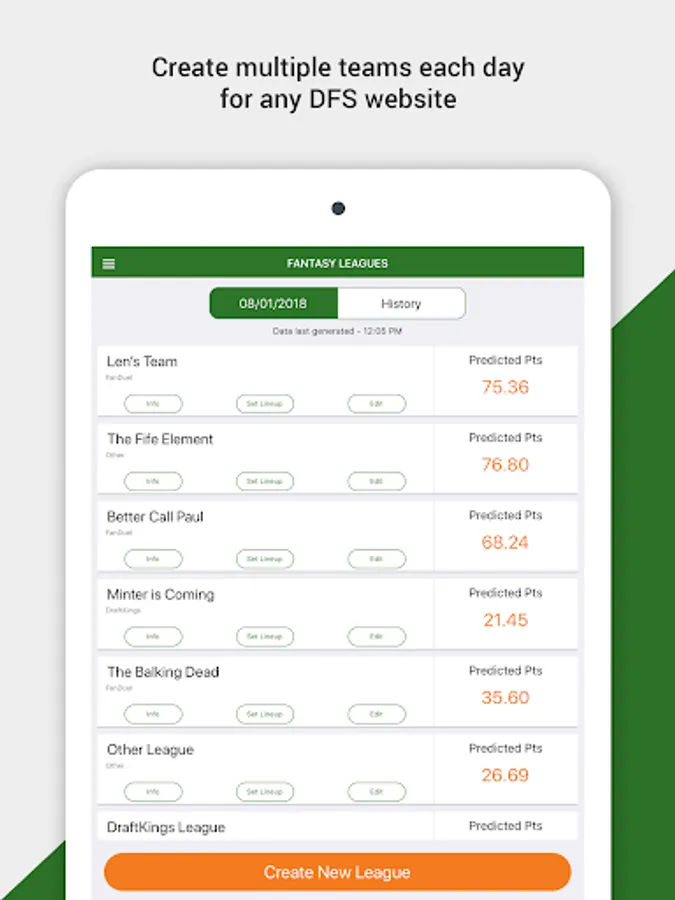 Choose from pre-set point structures from major DFS websites or customize your own to match the settings you are using. Easily compare players side by side to make your ideal lineup choices.