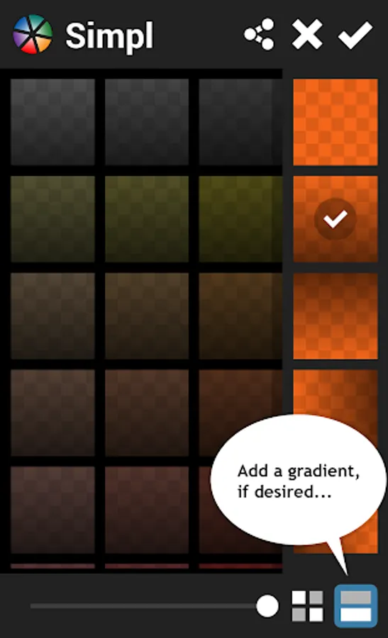 Simpl is a handy app and widget for applying minimalistic wallpaper colors and patterns on your home screen. Choose from hundreds of possible solid colors, optionally add any one of several included patterns and/or gradients, and voila!... you're set! It's really Simpl! :)