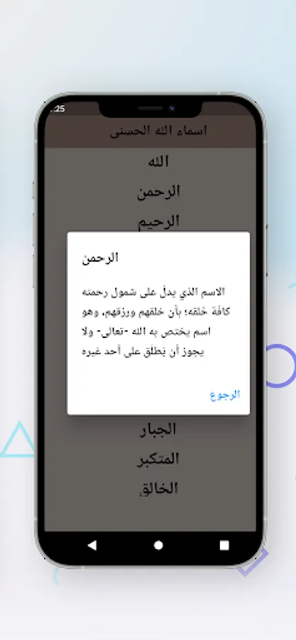 The application presents the most beautiful names of God and their meanings in a beautiful and smooth way