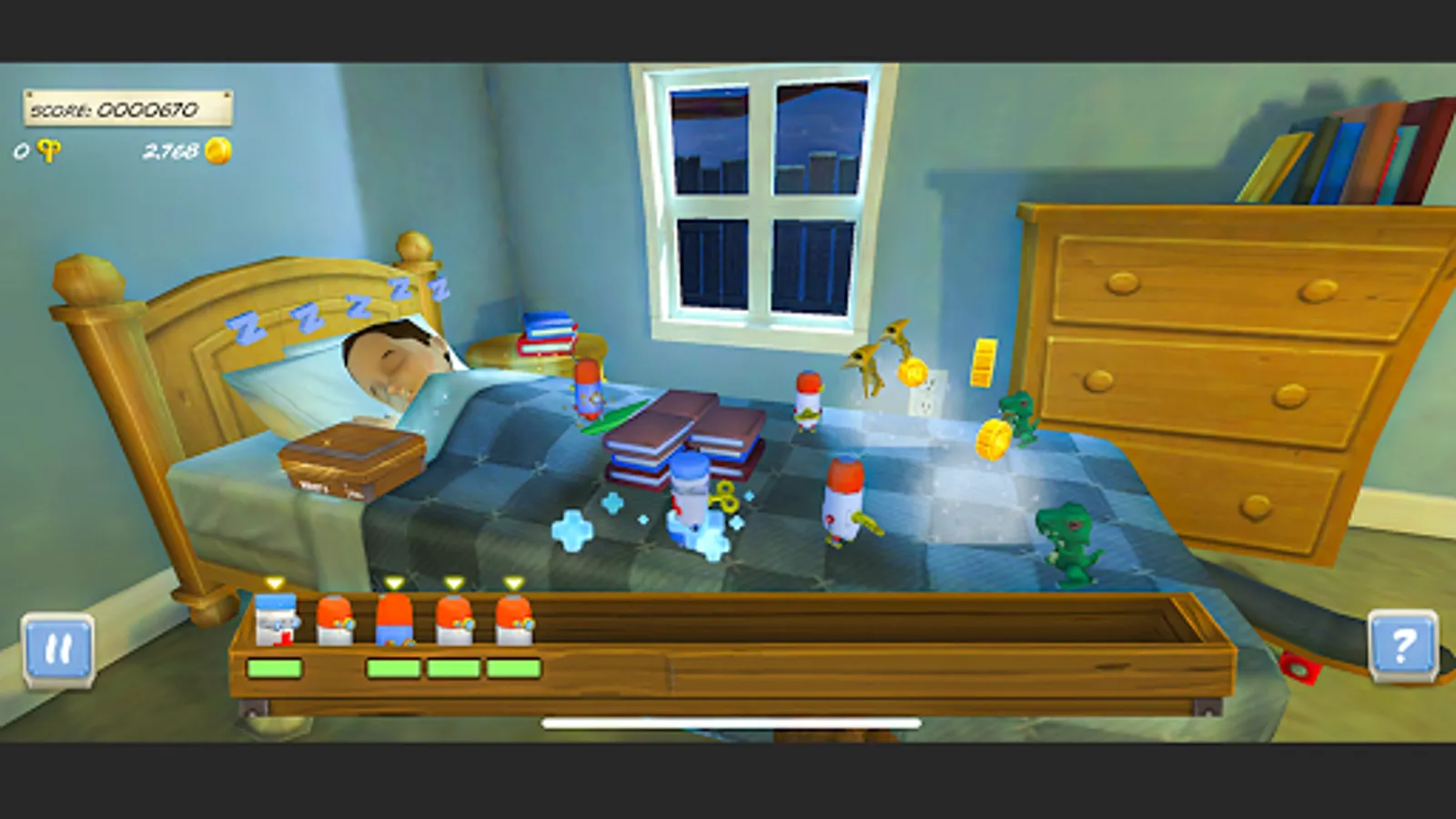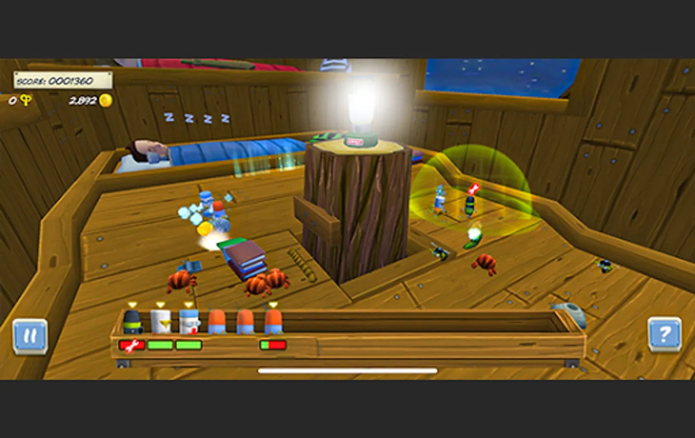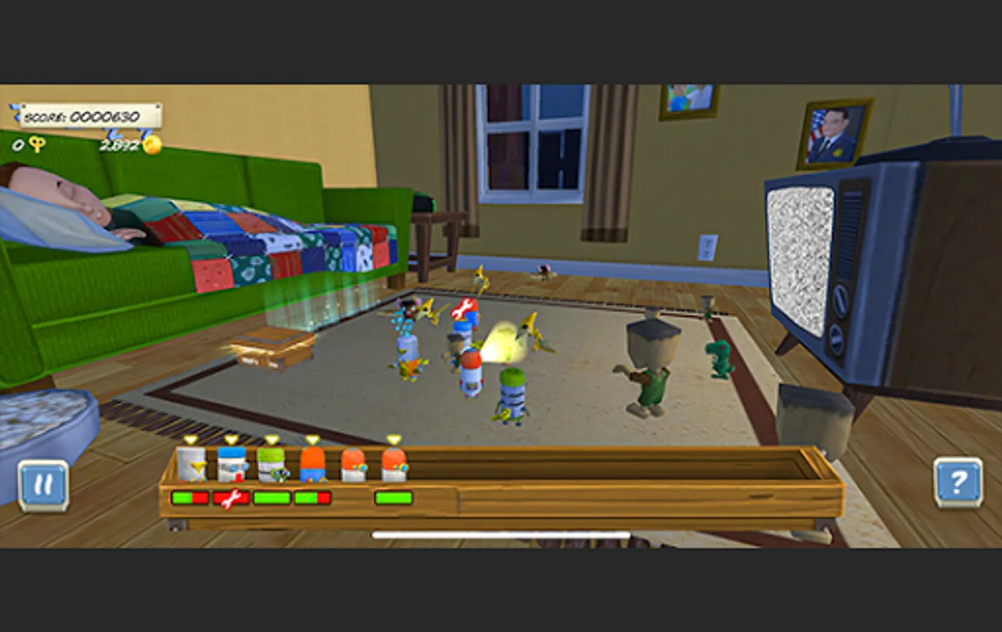 Explore Zach's world in a fully three-dimensional world. Choose your robots to battle an onslaught of monsters from cow-spawning alien ships to beaver-toothed t-rexes. Seven robots featured to upgrade and customize and 12 unique enemy types. Wind Up Robots will delight kids both young and old.