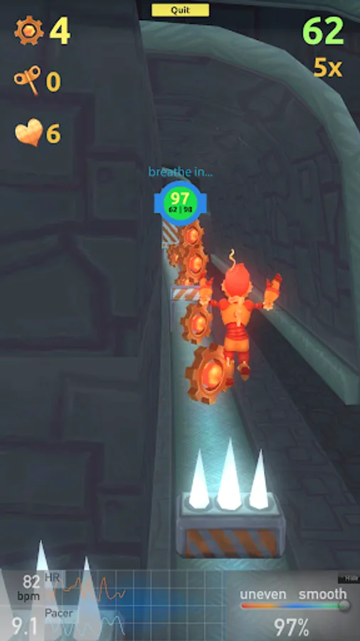 Cog Runner is an infinite runner game where you have to optimize your breathing to win! This game will leave you feeling great as the game responds dynamically to your heart rate and breathing rhythms, guiding you to breathe well and improve your health while playing a fun game.