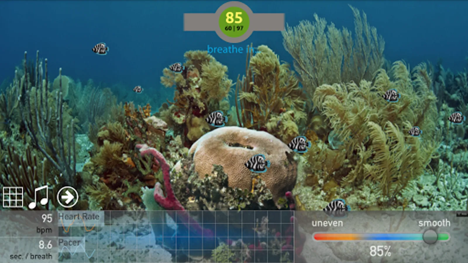 Relaxing scenery will leave you feeling great as the game responds dynamically to your heart rate and breathing rhythms, guiding you to breathe well and improve your health while playing a fun game.