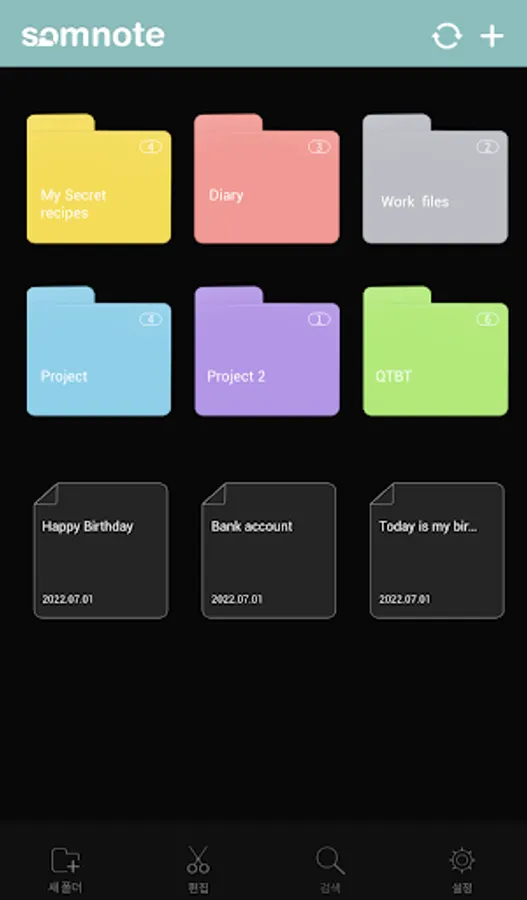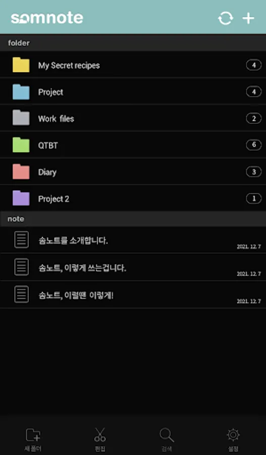 솜노트 사용자를 위한 다크모드 테마입니다.