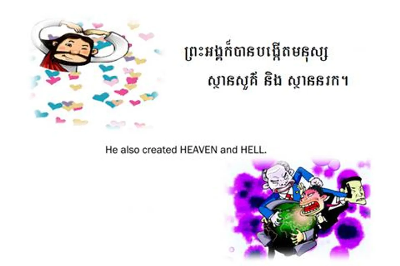 삼일교인이 아니셔도 캄보디아 선교 가시는 모든 분들께 권해드립니다. 크메르어로 쓰여있고, 녹음되어 있어서 전도에 유용합니다. 화면을 터치하면 페이지 전환이 됩니다.