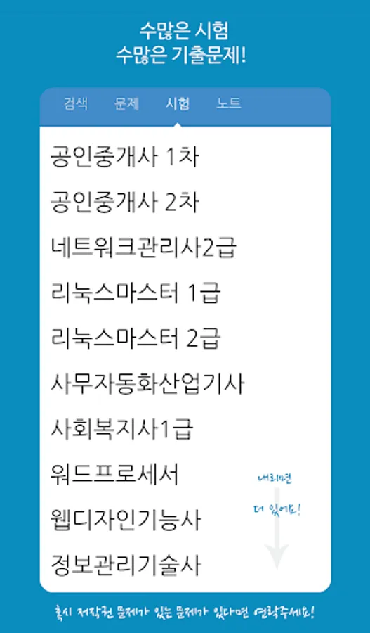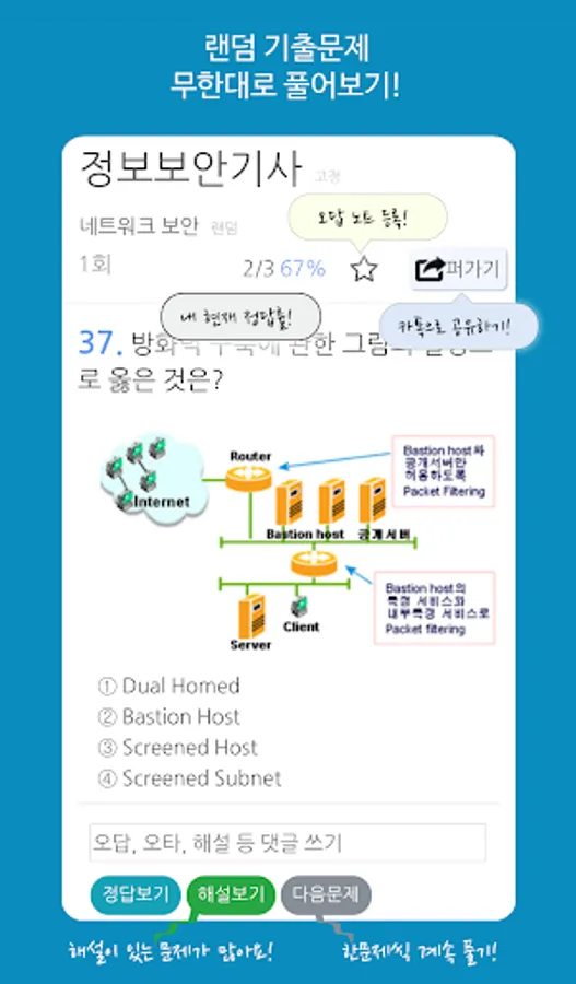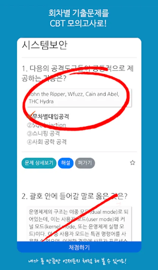 There is a community with problem explanations, comments, and question boards, so you can study fun! Also, through the community, discussions about typos or controversial issues are actively conducted and the issues are constantly managed, so you can study with higher quality issues than other similar CBT.