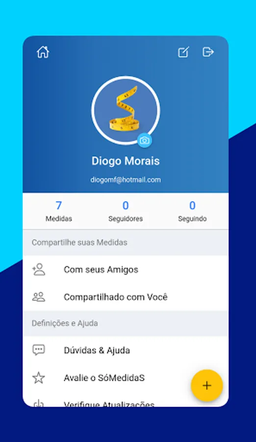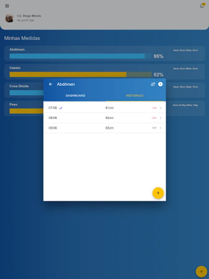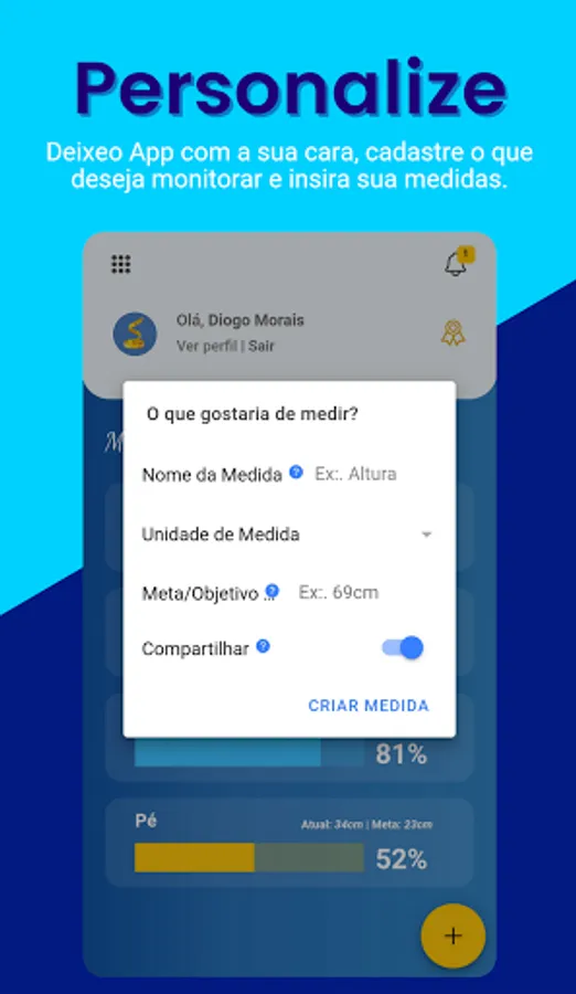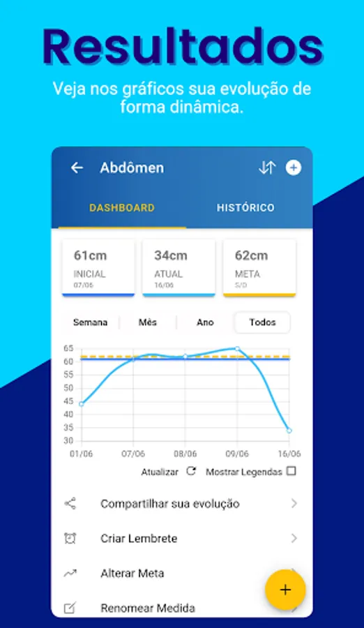 We are here to help you monitor your weight, abdomen, biceps, waist and everything else you want in a practical and dynamic way. With SóMedidaS you can inform your measures, create reminders for a period control, establish your goals for each measure, follow its evolution through graphs. In addition to being able to monitor as you wish, Só MedidaS also allows you to share your achievements with your friends!!!