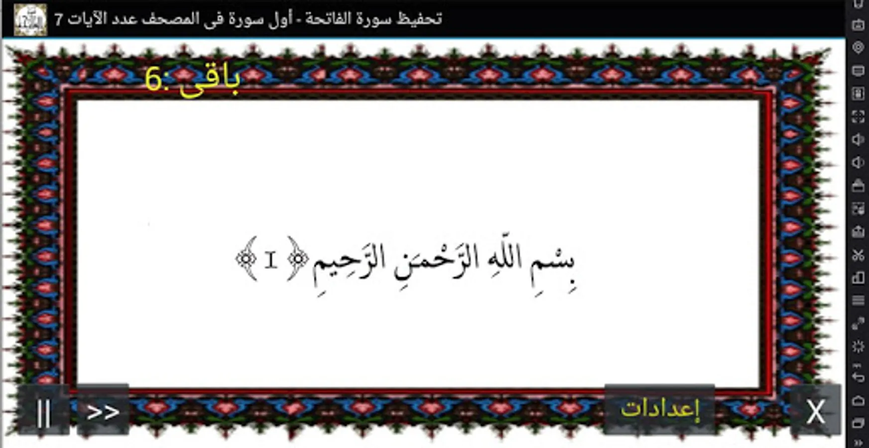 The Teacher’s Qur’an, part (1), Surat Al-Fatihah, the first surah in the Noble Qur’an, the number of its verses (7), including the Basmala