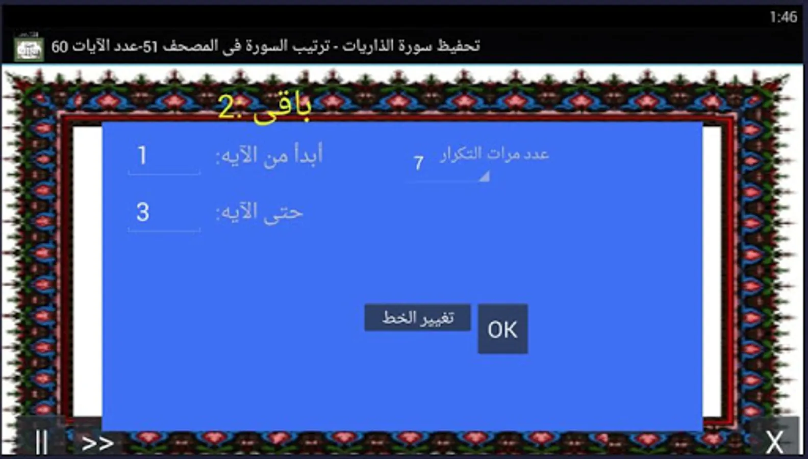 To repeat the recitation, press (<<) again, and to stop, press (||).