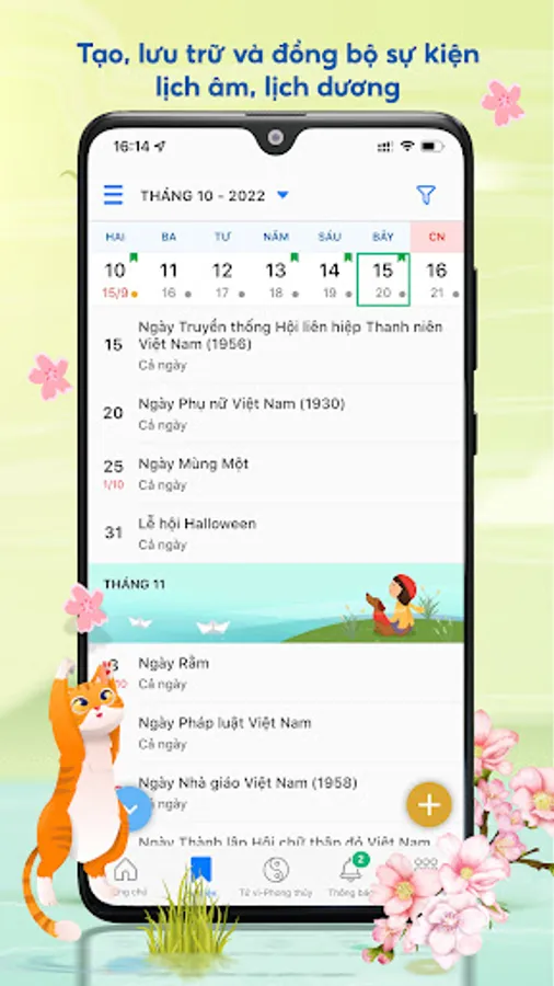 - Nhắc lịch ngày mồng 1, ngày rằm, ngày lễ.